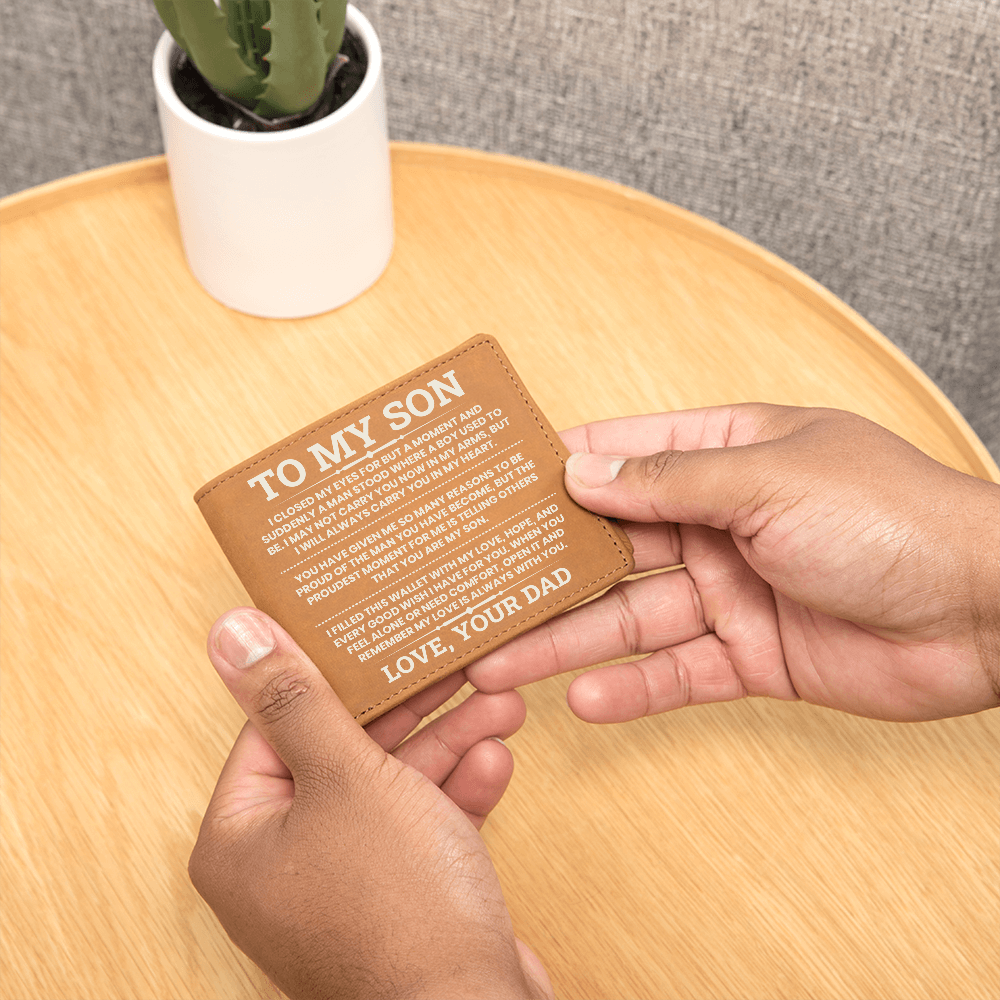 To My Son Leather Wallet, From Dad Gift, Meaningful Graduation or Birthday Gift for Son, Inspirational Wallet Keepsake
