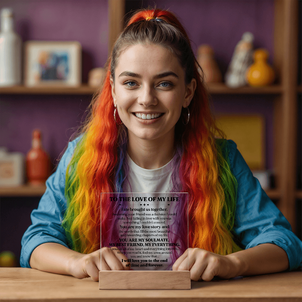 To My Soulmate Square Acrylic Plaque, Romantic LED Light Love Gift, Timeless Keepsake for Wife, Husband, or Partner