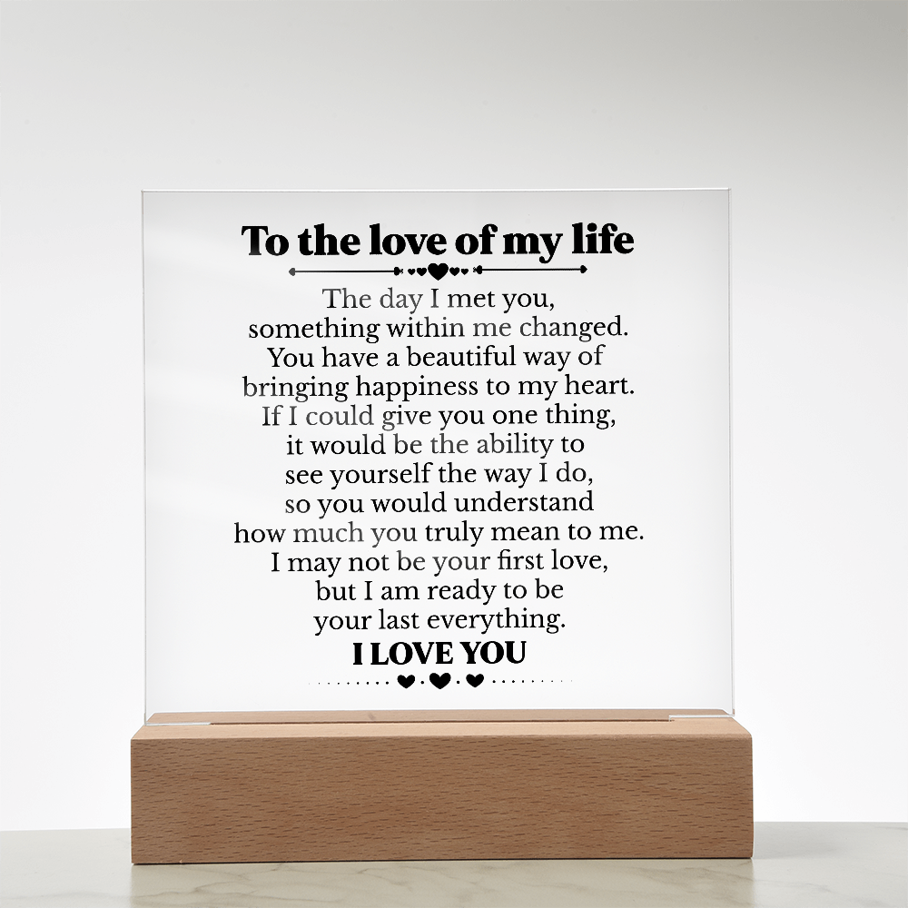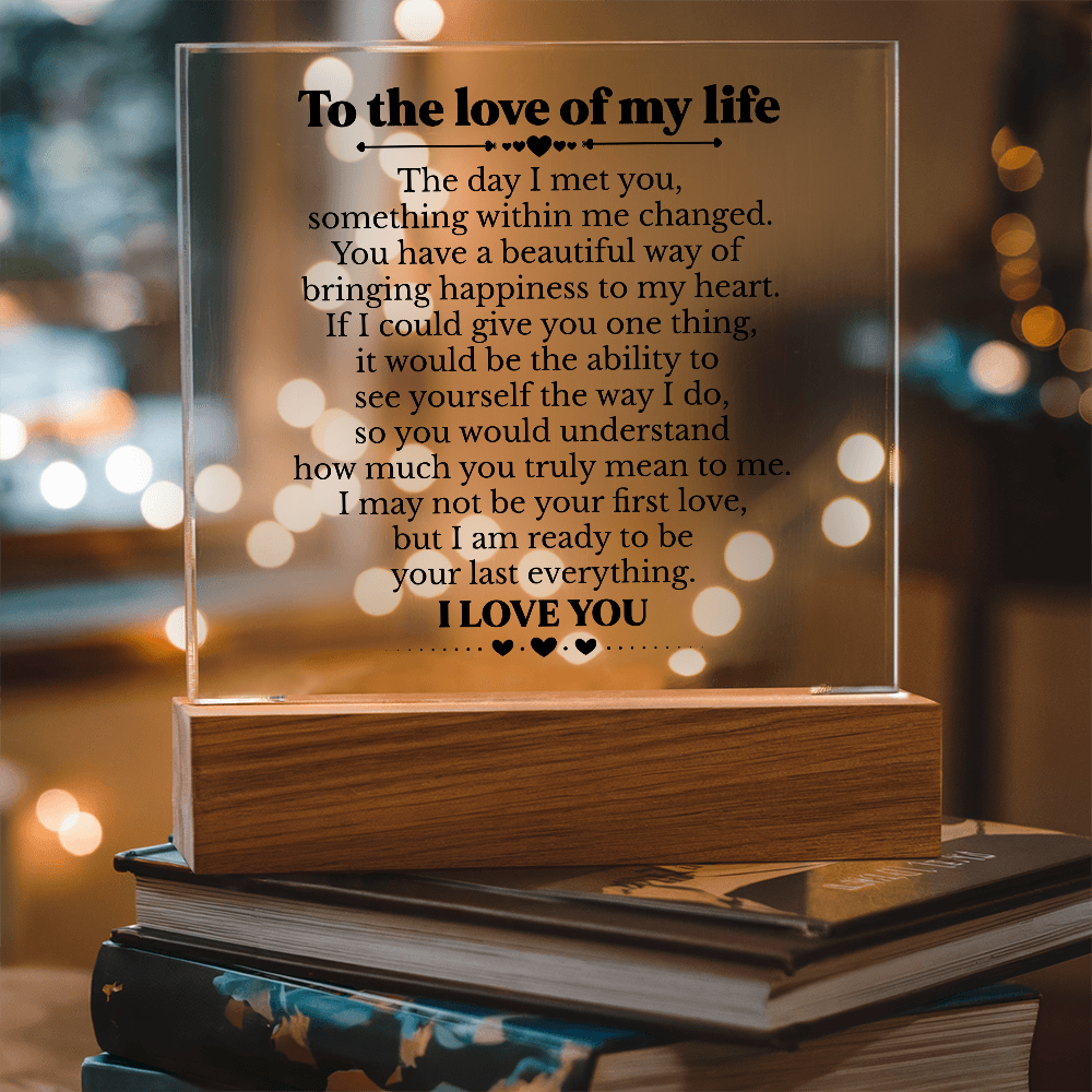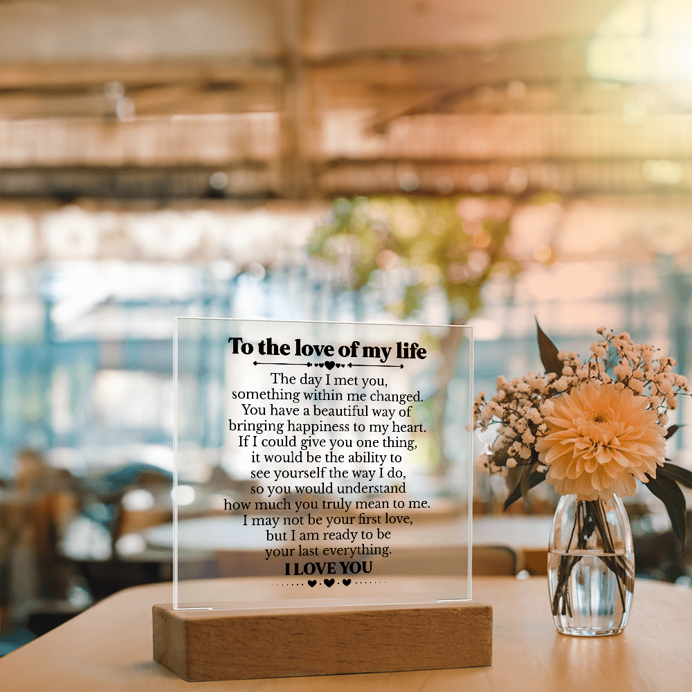 To My Soulmate Square Acrylic Plaque, Romantic Love Gift with LED Light, Timeless Keepsake for Wife, Husband, or Partner